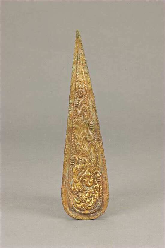 鎏金是金汞剂加热鎏金法的简称,这种方法又被称为火鎏金法,就是在室温中将呈半液态状的金汞合剂涂在铜器上,再进行加热令汞蒸发,黄金就留在器物表面上了。由于鎏金可以在器物的任意部位进行,汞的沸点又低,因此鎏金技法具有广泛的适用性。