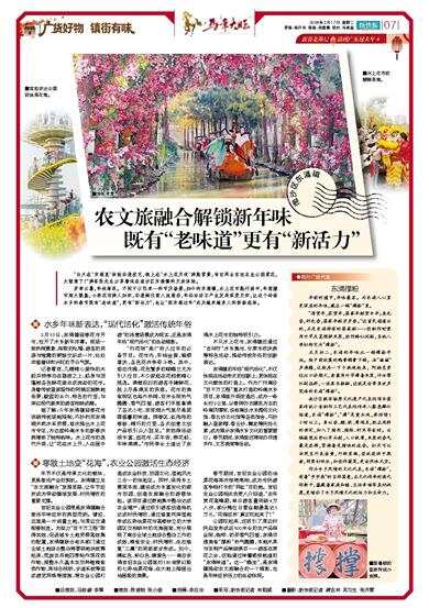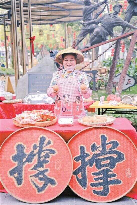 公园旺起来,还吸引了周边村民自发形成近500米长的农产品商业街,咖啡、奶茶香气四溢,东涌非遗美食“撑粉”热气腾腾,本地水果与农特产品琳琅满目——游客在赏花之余,还能通过味蕾感受地道的“东涌味道”。这一“蝶变”,是东涌镇推动农文旅融合的一个缩影,也是年味经济活力的生动体现。