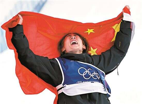 最后一名选手出发时,苏翊鸣甚至把脸蒙了起来,不敢看比赛。最终,新西兰选手落地失误,苏翊鸣凭借第一跳的82.41分拿到了冠军,帮助中国队拿到了在米兰冬奥会上的首金。