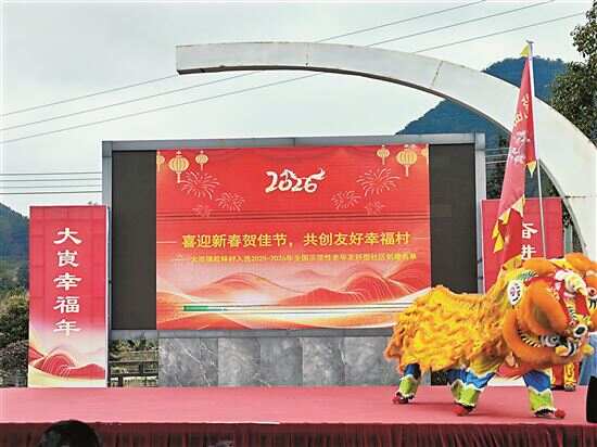 新快报讯 记者朱清海报道 新春佳节,喜事连连,清远市阳山县大崀镇松林村迎来了一份沉甸甸的荣誉——成功入选“2025-2026年全国示范性老年友好型社区”创建名单。为生动展现创建成果、营造敬老爱老浓厚氛围,近日,大崀镇在松林村水圳头党建公园隆重举办“粤美村晚”迎新春活动,以一场充满温情与文化气息的乡村盛会,绘就了一幅“老有所乐、老有所安、老有所为”的社区幸福画卷。
