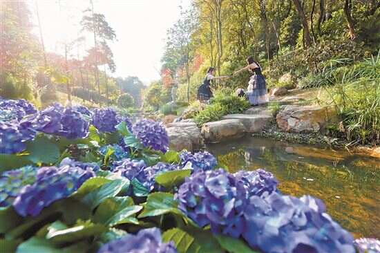 ■马年新春,广州云溪植物园举办盛大的绣球花展,整个园区以长达2.6公里的绣球花长廊为主轴,精心打造出六大主题花境。