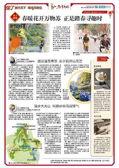 春风送暖,万物复苏,岭南大地处处繁花似锦、生机盎然。新春佳节里,踏青寻芳成为老广们欢度假期的惬意选择。无论是白云山的水墨春景、大夫山的趣味徒步,还是承载千年匠心的新会葵艺、清雅醇香的电白沉香,都在春日里绽放独特魅力。这个马年春节,让我们走进南粤自然秘境,沉浸式感受岭南春日盛景与非遗文化之美。