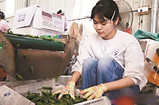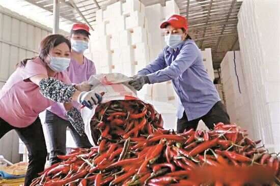 日前,新快报记者走访茂名市椒友种植专业合作社,看到周边农户陆续不断地送辣椒至此,车间内几十名工人正忙着分拣挑选、装箱辣椒,一派繁忙景象。“在这里工作一天最多挣180元,能干半年,收入稳定。”一名分拣工说。