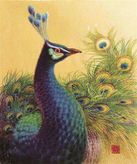 ■正在绣制的作品孔雀图。