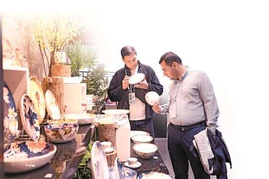 ■客商在第138届广交会的瓷器档位上了解产品。 新快报记者 毕志毅/摄(资料图)