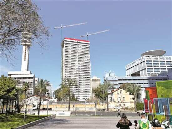 这是2月26日在以色列特拉维夫拍摄的以国防军总部的三栋大楼(手机照片)。