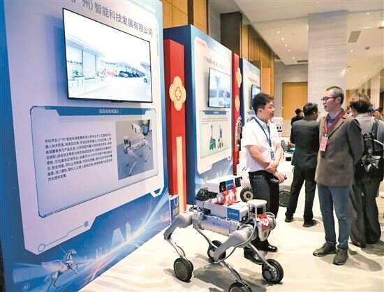 ■在会场设置的展示区,企业大秀“黄埔造”科创实力。 新快报记者 李小萌/摄
