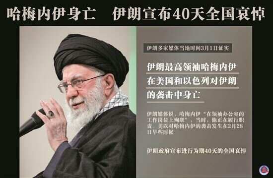 据新华社电 伊朗方面3月1日证实,伊朗最高领袖哈梅内伊在美国和以色列对伊朗的袭击中遇害。美以对哈梅内伊的袭击发生在2月28日早些时候。