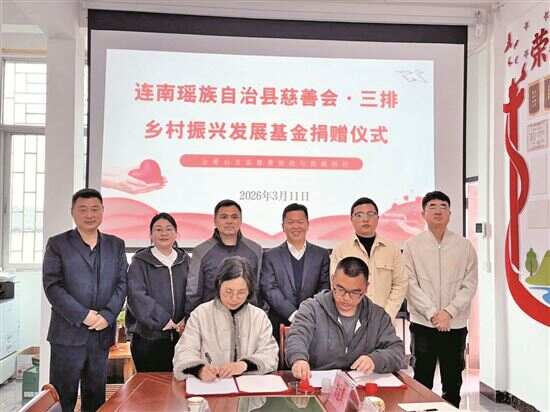 3月11日,广州市派驻清远市连南瑶族自治县三排镇帮镇扶村工作队(以下简称“工作队”)发起设立的“连南瑶族自治县慈善会·三排乡村振兴发展基金”(以下简称“基金”)捐赠仪式在三排镇举行。该基金隶属于县慈善会,工作队促成爱心企业连续两年捐款共计37.79万元,用于帮扶困难群众、发展乡村产业、完善公共服务等百姓“暖心事”。