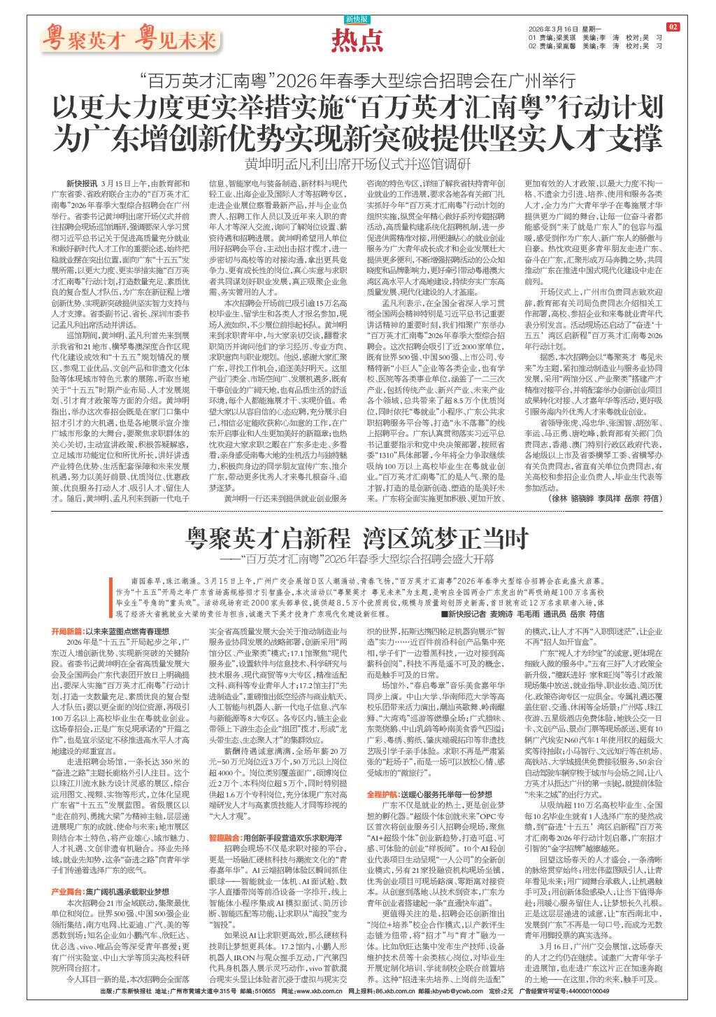 “百万英才汇南粤”2026年春季大型综合招聘会在广州举行