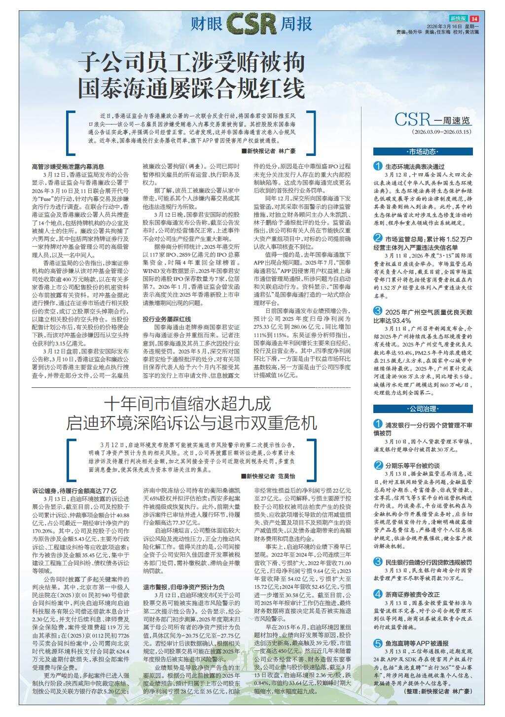 CSR一周速览(2026.03.09-2026.03.15)