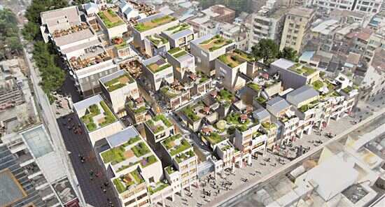 方案还提出“空中绿岛·屋顶花园”的策略,通过立体巷道分割建筑体量,形成岛状建筑分布结构,植入屋顶绿化,同时通过天桥连接成为打造具有休憩娱乐功能的屋顶花园。