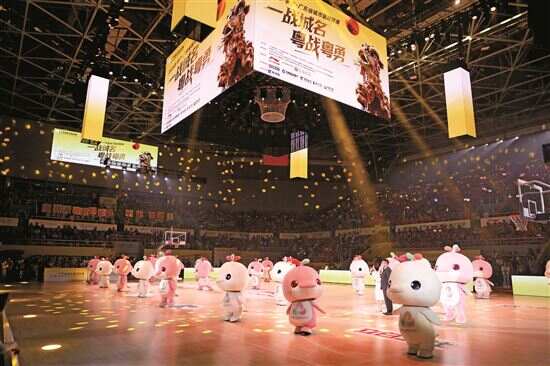 此次粤BA开幕式,一共有21只“大湾鸡”前来助阵,他们不仅参加了开幕式的表演——在演唱赛事主题歌时伴舞,还客串担任现场的氛围组,通过滑稽的姿势和搞笑的动作调动现场观众的情绪。