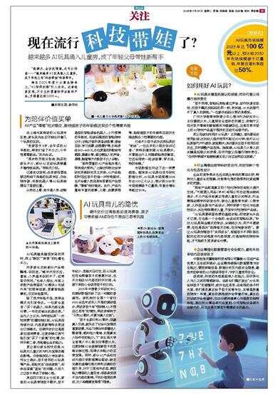 已有不少孩子成为这类玩具的“粉丝”,一位五岁的小朋友告诉记者:“我特别喜欢跟AI玩具聊天,不管提出什么问题都能得到解答,它还会陪我一起讲故事、背古诗,特别有趣。”