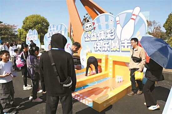 互动游戏区更是热闹非凡。保龄球游戏、反诈套圈、射击游戏、反诈飞行棋等趣味项目前排起长队,大人小孩跃跃欲试。