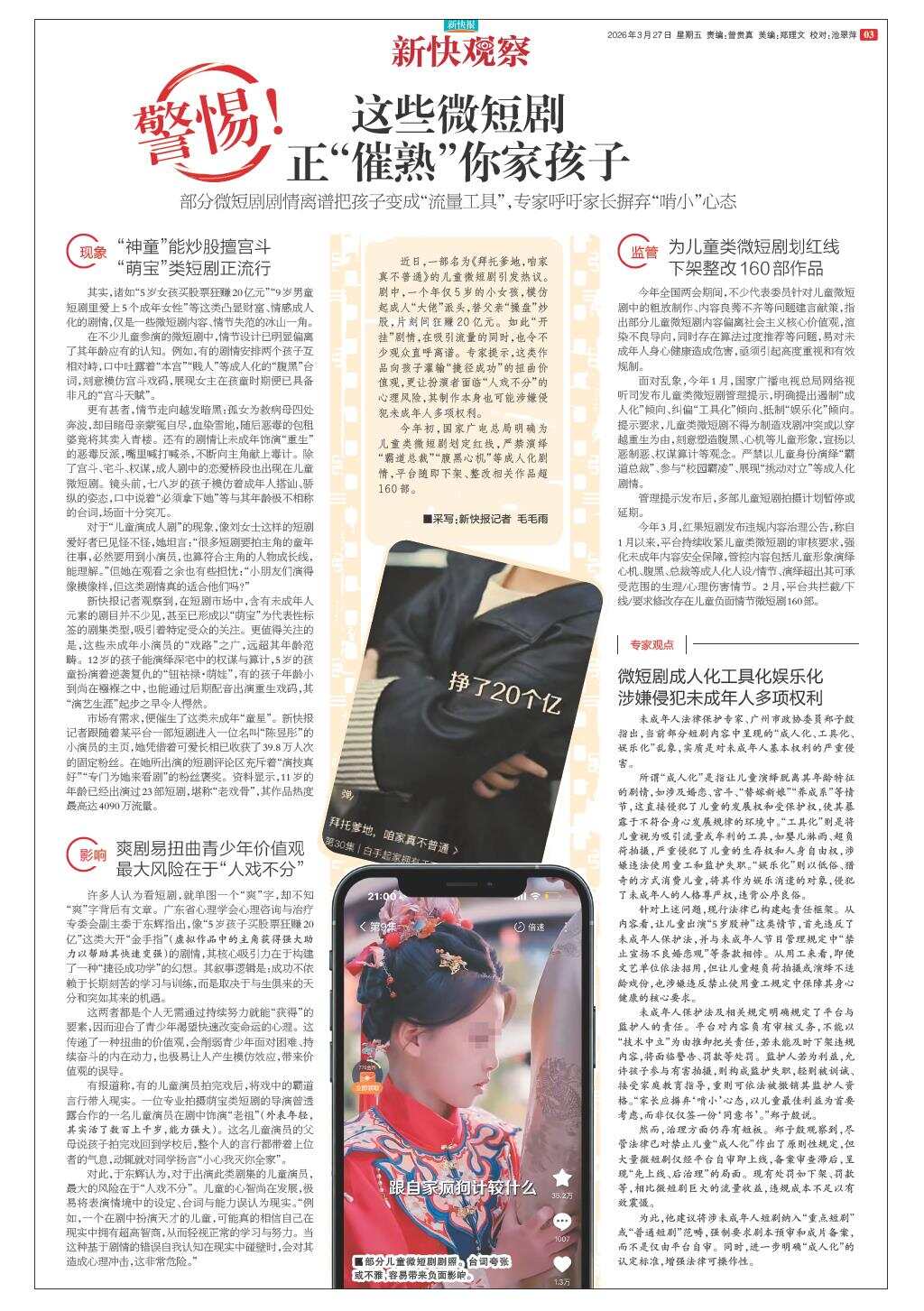 警惕!这些微短剧正“催熟”你家孩子