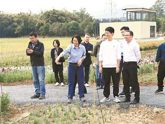 ■吴俊师(前右二)陪同广州产投集团相关负责人到禾云镇芳香种植基地调研指导。