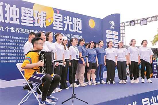 ■3月29日,在深圳龙华,恒畅(前)作为星光跑代言人参加公益演出。 (受访者供图)