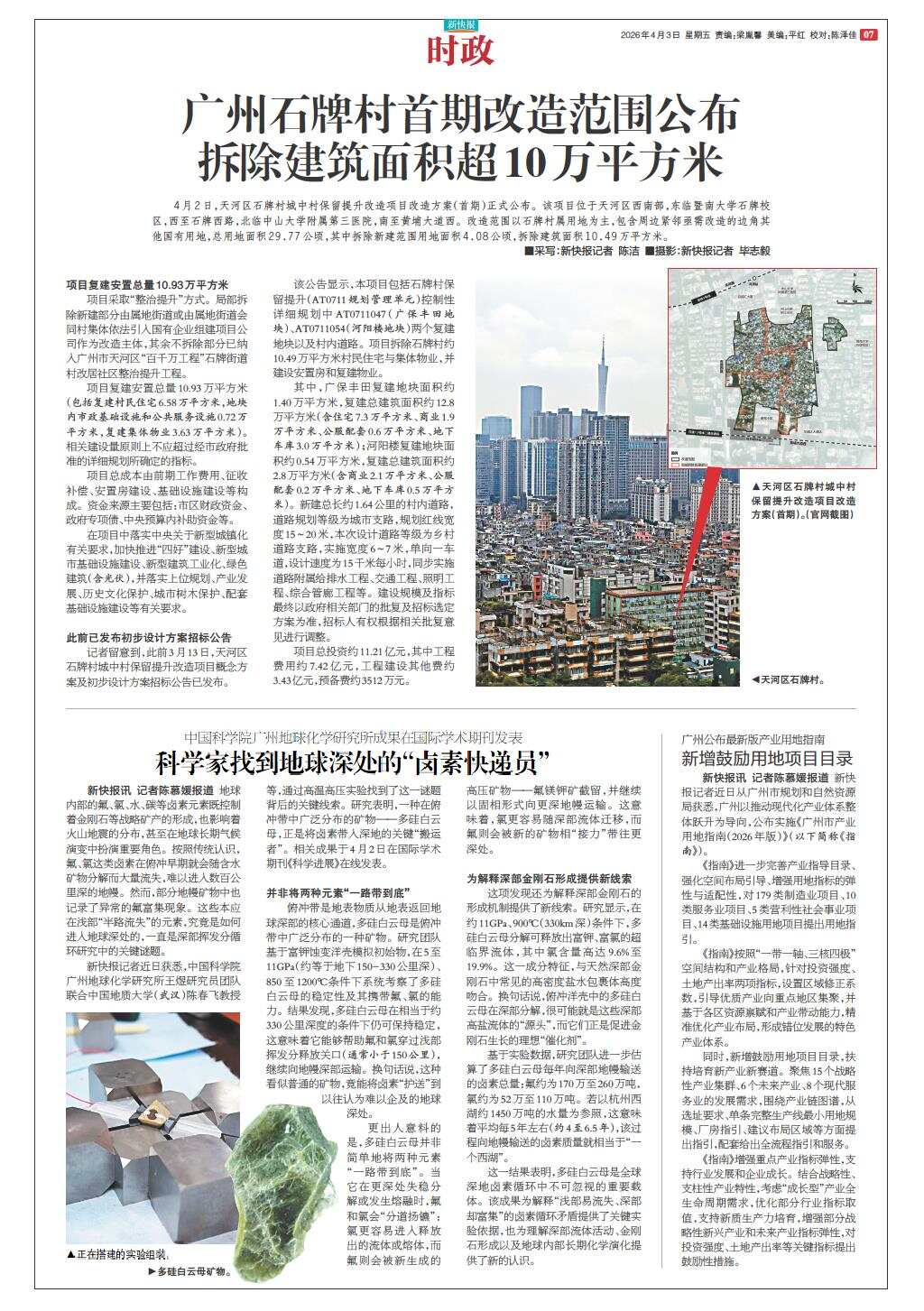 广州石牌村首期改造范围公布 拆除建筑面积超10万平方米