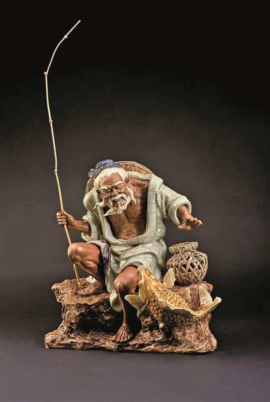 他的陶塑人物吸取西方雕塑的块面结构与体积感,融合石湾传统捏塑技法,藉人物肌肉、骨骼的肌理塑造粗犷与精微并存的质感,以表现与强化人物的性格特征,从而拓展与丰富了石湾陶塑的艺术表现力。其所塑古今人物或雄健豪放,古朴厚重;或骨骼清奇,刚劲朴拙;人物神韵及肌肉、骨骼肌理的刻画尽精入微,令观者似可感受到其内蕴的精神力量。此外,他对作品的釉色有执着的追求,其作品“随情赋彩”的釉色之美,融合偶然天成的“窑变”之妙,为静态的物象注入一种生命的律动。