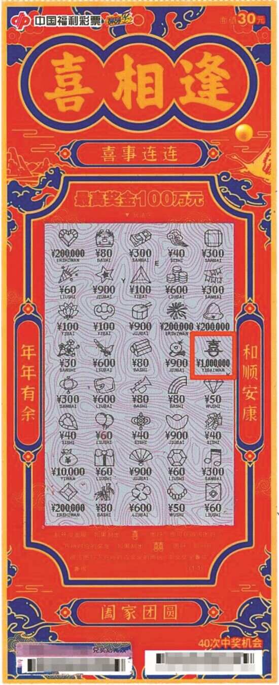 其中两人分别刮出“万事如意”“喜相逢”一等奖