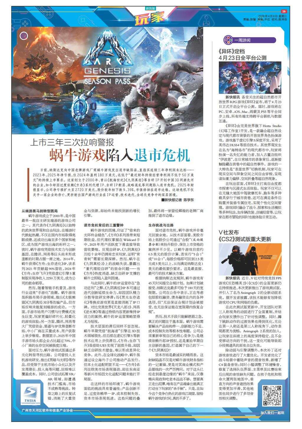 上市三年三次拉响警报 蜗牛游戏陷入退市危机