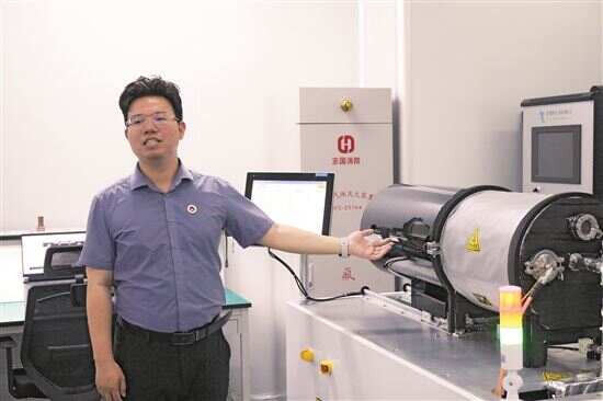 ■广东省新兴激光等离子体技术研究院产业基金部副主任郑耿哲在介绍原子层沉积设备。金瑜/摄