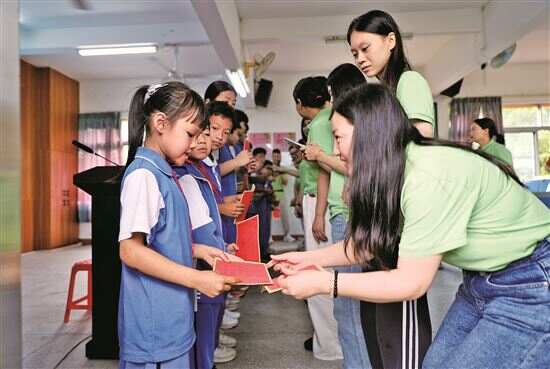 爱心助学团队为鱼坝学校的学生们送上了助学金。