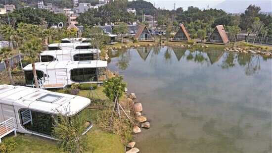 在南澳岛腹地后宅镇西山片区,南澳·四季田园生态休闲民宿区,三角屋、太空舱、童话屋、星空屋等不同主题民宿,分布在水清岸绿的心悦湖畔,让许多游客的脚步慢下来,把人气流量变成“留量”,转化为文旅消费“增量”。