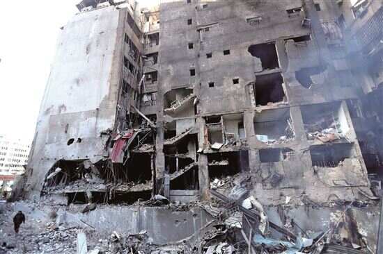 ■黎巴嫩南部兹拉里耶遭以色列空袭后的建筑废墟。