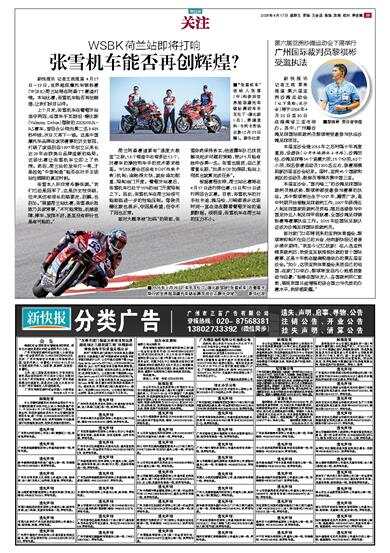 新快报讯 记者王敌报道 4月17日~19日,世界超级摩托车锦标赛(WSBK)荷兰站将在阿森TT赛道打响。本站比赛,张雪机车能否再创辉煌,让我们拭目以待。