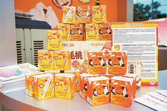 ■“广州好礼”展示空间展示的姜葱白切鸡风味牛奶。