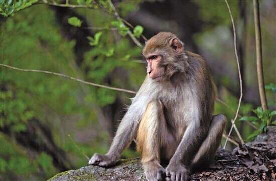 庐山风景区在林间跳跃嬉戏的猕猴。