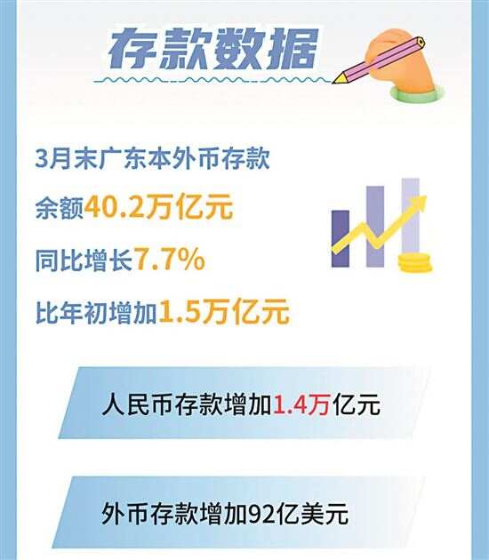 今年以来,人民银行广东省分行坚决贯彻党中央、国务院决策部署,落实适度宽松的货币政策,充分发挥货币政策工具总量与结构双重功能,推动社会融资条件保持宽松,金融总量增速较去年同期加快,营造了适宜的货币金融环境。截至一季度末,广东社会融资规模存量同比增长6.9%;本外币贷款余额30.7万亿元,同比增长4.8%;存款余额40.2万亿元,同比增长7.7%。值得关注的是,活期存款余额同比增速达8.1%,快于各项存款增速。人民银行广东省分行副行长张双长表示,存款“活化”特征显著,存量与增量政策效果持续显现,有效撬动消费与投资,激发市场活力,让经济循环“动了起来”。
