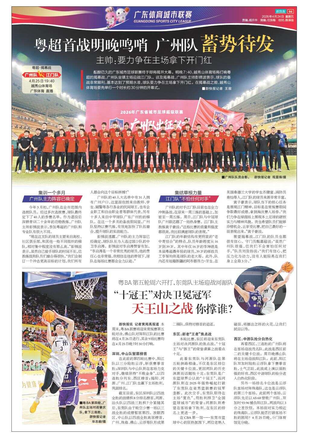 粤超首战明晚鸣哨 广州队蓄势待发