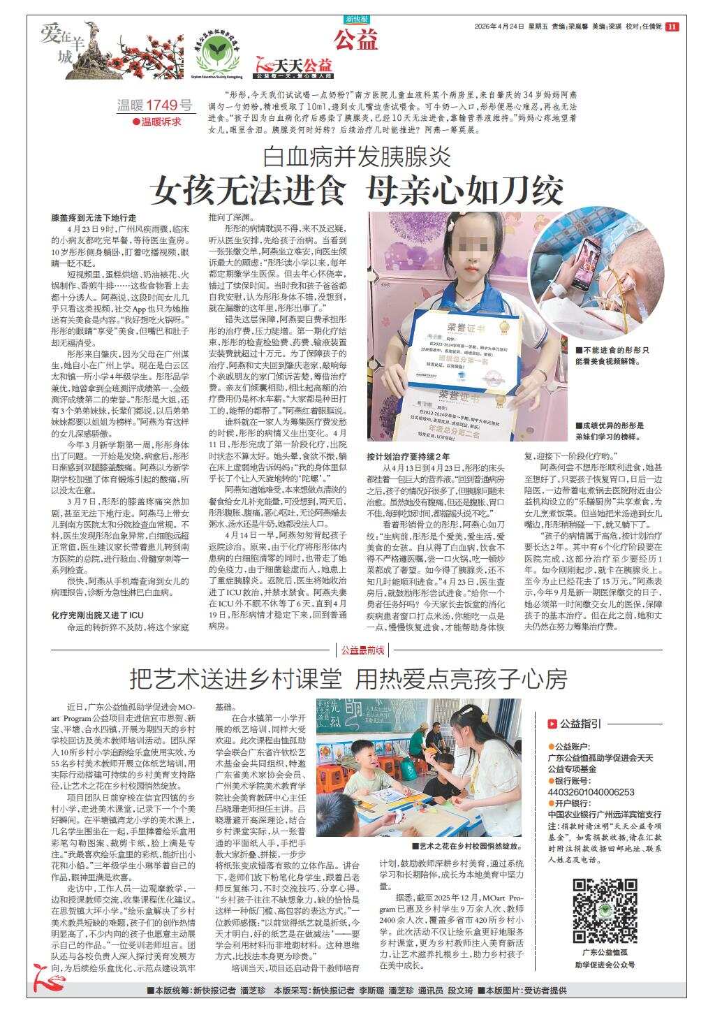 白血病并发胰腺炎 女孩无法进食 母亲心如刀绞