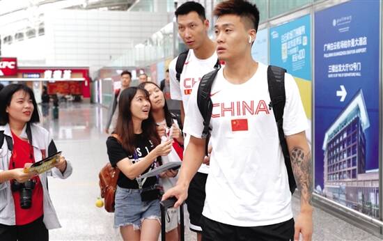 ■昨日下午,中国男篮抵达广州。新快报记者孙毅 实习生郭思杰/摄