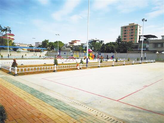 ■广东雄资石油化工集团有限公司捐资建设的塔头文化广场,设有篮球场、运动跑道、健身器械,还搭建了舞台。 |