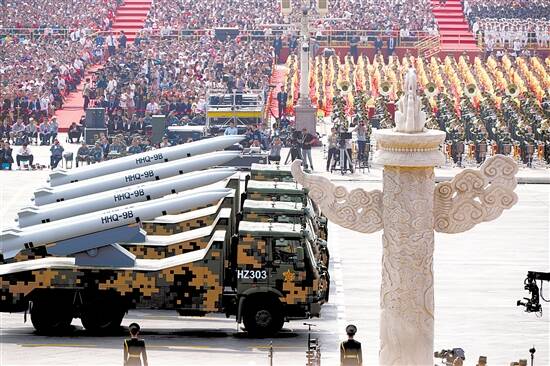 舰舰/潜舰导弹方队:方队展示的武器装备是我国自行研制的新型潜射、舰射反舰巡航导弹YJ-18/18A。这型导弹具有射程远、威力大等特点,是人民海军反舰慑敌的中坚力量。方队负责人接受采访时表示,YJ-18/18A舰舰/潜舰导弹是人民海军反舰武器发展的一个缩影,标志着海军反舰能力的提升,其特殊造型、作战能力意味着海军导弹发射更趋于多样全面。 舰载防空武器方队:受阅装备为海红旗-9B、红旗-16、红旗-10等武器系统。据介绍,受阅装备均由我国自主研制,分别起到远程、中程、近程、末端防御作用,共同构成海上对空防御体系,为我海上战斗群搭建起一张严密立体的现代化防空反导防护网。 海红旗-9B是红旗-9的改进版,可以有效攻击高速、多方向、多高度的飞机和巡航导弹。红旗-16是一种具备多目标攻击能力的舰空导弹,能够有效对抗掠海飞行的反舰导弹等目标。红旗-10可有效应对海上、空中和陆地对舰艇发起的导弹攻击。 预警雷达方队:接受检阅的雷达是我国新一代防空预警探测体系的骨干装备。与传统雷达相比,这些雷达有更强大的战场感知能力和抗干扰能力,能够有效应对各种空天威胁,是防空反导一体化的重点装备。 地空导弹第1方队:方队装备由红旗-9B远程地空导弹和红旗-22地空导弹混编而成。红旗-9B是国产新型地空导弹武器系统,具有全天候、全方位作战能力,能适应未来复杂战场环境,以要地防空为主,兼顾野战防空。红旗-22具备较强抗干扰能力、对付多目标能力和机动作战能力。 地空导弹第2方队:由8辆红旗-12A地空导弹发射车和4个红旗-6A弹炮系统火力单元组成。受阅的两型装备是国产中程和近程末端防空武器系统的代表性装备。红旗-12A地空导弹是我国自主研制的中高空、中程地空导弹武器系统;红旗-6A弹炮系统是我军新一代近程末端防空武器装备,以导弹的高精度和炮弹的高射速实现末端防空拦截。 野战防空导弹方队:由红旗-17A防空导弹发射车、红旗-16B防空导弹发射车组成。红旗-17A防空导弹武器系统,能够拦截进入作战空域内的作战飞机、巡航导弹、空地导弹、反辐射导弹等空中目标,具有行进间空域搜索、空情分析、发现目标后进行短射击的能力。红旗-16B防空导弹武器系统,能够拦截飞机、空地导弹等空中目标,具有野战机动性好、展开快速等特点。 ■本版文图据新华社