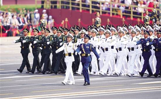 十里长街,铁流滚滚,浩荡而来;秋日长空,战机翱翔,傲视苍穹……宏伟的天安门见证着盛大阅兵的一个个精彩瞬间。 高光时段之一 百名将军受检阅 ●现场 守不忘战,将之任也。在领导指挥方队,25位将军组成第一排面走来;在100面战旗迎风飘扬的战旗方队前面,五大战区主要指挥员乘着战车并排驶过天安门……将星闪耀,吸睛无数。 ●人物:领导指挥方队领队陈作松 此次阅兵,除文职、民兵、预备役等几个方队外,领队均为将军,受阅将军超过100人,包括2位女将军。 百将受阅,创历次阅兵之最。这些将军阅历丰富,学历较高,历经多个岗位和重大军事任务考验,大多有跨军种培训或工作经历,组织指挥过双边、多边联合军事演习。 ●点评(北部战区副司令员姜国平): 百余名将军在阅兵场上以普通一兵身份喊口号、听口令、做样板,树立了高级领导干部带兵打仗、砺将谋胜的鲜明导向,展现了身先士卒的良好形象,展示了绝对听党指挥、勇于担当尽责的高度自觉。 高光时段之二 大国重器揭面纱 ●现场 大国长剑,浩荡东风。总长超过20米的“大胖墩”东风-41洲际战略核导弹方队压轴出场,“国之重器”终于在世人面前揭开了神秘面纱。 ●人物:东风-41核导弹方队队长娄涛 一分未快,一分未慢,我们驾驶着最为“金贵”的车辆接受检阅。 此次阅兵,有40余型300多台新装备首次参阅,既有轻型坦克、反坦克导弹等陆上攻坚新锐,也有东风-5B、东风-41等“大国重器”。 ●点评(火箭军某基地司令员赵秋领): 新装首秀,是我军实施科技兴军成果的一次集中展示。这些新装备都是我国自主研发,信息化程度普遍较高,比较充分地体现了我国国防科研自主创新能力。 高光时段之三 中国蓝盔国际范 ●现场 头戴蓝色贝雷帽的维和部队方队,意气风发地正步行进。网民盛赞,“中国蓝盔”最具国际范儿。 ●人物:维和部队方队领队马宝川 最近,我国赴南苏丹、刚果(金)的工兵、医疗分队刚刚完成轮换交接。中国是联合国安理会常任理事国中派出维和兵力最多的国家,目前在联合国7个维和任务区,有2500多名中国军人在枪林弹雨中守护和平。自1990年起,我军累计派出官兵4万余人次参加联合国维和行动,有13名中国军人牺牲在异国他乡。 ●点评(陆军第81集团军副军长徐有泽): 维和部队方队代表的,是千千万万为了和平与安全、奉献青春和热血的中国军人。维和部队方队受阅向世界昭示:中国不仅是全球发展的贡献者,也是国际秩序的维护者。 高光时段之四 英姿飒爽看女兵 ●现场 铿锵玫瑰,天安门前盛放。1日上午,英姿飒爽的女兵方队,迈着整齐的步伐接受检阅。这些女兵来自狙击手、飞行员、导弹手等多个战斗岗位。 ●人物:女兵方队队员朱亚荣 “队员都是从战位直接到站位的!”接受检阅的下士朱亚荣告诉记者。 朱亚荣是火箭军的一名女导弹操作号手兼发射车司机,平日里开着几十吨重的10轮发射车,已经安全驾驶1.2万公里。为了能转动直径差不多有一米的方向盘,她坚持每天做俯卧撑锻炼臂力。 原本以为导弹兵的身份在女兵方队会引起轰动的朱亚荣,没想到身边的女战友个个都是“高手”:有的刚从国际比武赛场载誉归来,有的是所在集团军的纪录保持者…… ●点评(陆军第72集团军副政委何纪抗): 近年来,全军狠抓实战化训练,一批女兵从勤务支援岗位调整到战斗岗位。让战斗岗位的官兵接受检阅,折射出我军备战打仗的鲜明导向,也向世界宣示:重整行装的人民军队,更是能打硬仗的“雄师劲旅”。 高光时段之五 霸气炮神滚滚来 ●现场 “炮神”来了!8台箱式火箭炮组成的钢铁巨阵,滚滚而来——刚毅威武的外形、突破常规的设计,首次亮相就让人们震撼。 ●人物:自行火炮方队队长卢涛 当自行火炮方队在长安街上隆隆开进,我们除了自豪还有震撼。 我们旅曾参加过百团大战、解放战争、抗美援朝战争等。目前,旅里列装了全军新型数字化火箭炮。 这种箱式火箭炮射击精度高、火力反应快、信息化水平高。所用武器系统是陆军第四代远程火力打击的骨干装备,能对作战地域实施全纵深火力打击,也可完成联合火力打击任务。 ●点评(阅兵装备方队指挥部王新悦): 新型火箭炮可自主实施作战,缩减了指挥层级,极大提升了火力反应速度,预示着炮兵部队“兵力分散、火力集中”的新作战理念得以实现。 高光时段之六 模块混编为实战 ●现场 1日上午,由火箭军和海军7个装备方队、百余台型号不同的“大国重器”混编成战略打击模块,浩浩荡荡行驶在长安街上。各种装备刚一亮相,就在网上引起热议。 ●人物:东风-26核常兼备导弹方队政委董祥林 东风-26型导弹已是第3次参加阅兵。前两次,都由火箭军抽组而成,并没有其他军种参与。与海军某型导弹混编后,可实现火力打击梯次衔接、精准度高、覆盖面广。如此配置,发挥出了诸军兵种联合火力打击的效能。 模块化编组,完全是按打仗的标准在编组,是实战化的阅兵。 这次阅兵,装备方队包括陆上作战、海上作战、防空反导、信息作战、无人作战、后装保障、战略打击等7个模块,每个模块都按作战单元和作战要素精细化混编而成。32个装备方队中,有19个属于混编。 ●点评(火箭军某基地政委张继春): 作战要素一应俱全,彰显了中国军队基于信息系统联合作战能力正大幅提升,信息主导、体系支撑、联合制胜已成大势。 高光时段