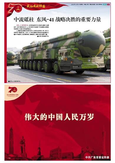 东风-41核导弹方队:在受阅地面方队压轴的战略打击模块中,首次亮相的东风-41核导弹方队彰显了我国最先进最具有威慑力大国长剑的重要地位。
