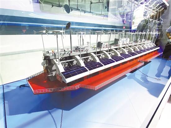 ■鹰式波浪能兆瓦发电平台。 新快报记者 沈逸云/摄 |