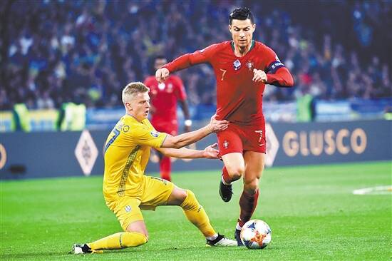 ■C罗与乌克兰队球员津琴科拼抢。新华社发 |