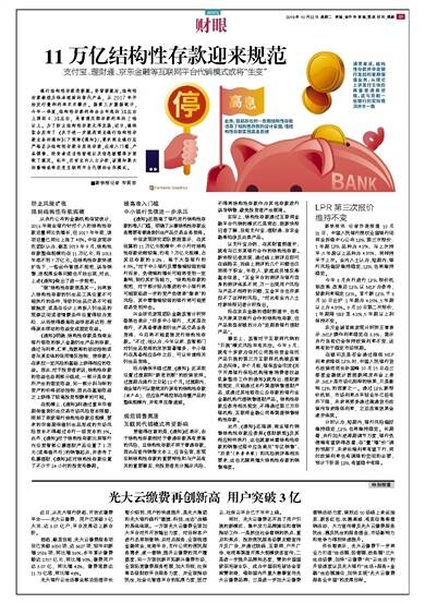 银行结构性存款迎新规。资管新规后,结构性存款被视为保本理财的替代产品,从2017年开始发行量和利率双双攀升。据第三方数据统计,今年一季度,结构性存款利率由去年底的3%左右上调到4.3%左右,是普通