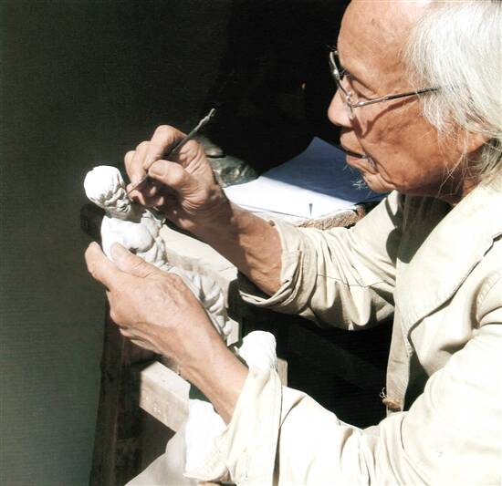 ■曹崇恩的手指因长年制作石雕以致变形 |