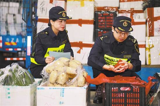 据悉,1999年12月20日澳门回归祖国以来,内地经珠海口岸共向澳门供应蔬菜约19万批,共128.7万吨;供应水果约6万批,共41万吨;供应水产品约61.7万批,共36.8万吨;供应活畜约7万批,共244万头。其中增长最快的是供澳蔬菜量,年均增长10%。 ■新快报记者 李红云 通讯员 俞波 邓璐 物流方式多样 从“三趟快车”到“菜园子” 拱北海关相关负责人表示,对于澳门居民而言,每天餐桌上都少不了一道新鲜绿叶蔬菜。早在上世纪60年代初,各地就开始调集鲜活产品,开通“三趟快车”,开启供港澳之路。随着内地经济飞速发展,现代物流蓬勃兴起,单一的铁路运输转向公路、水路运输等多种方式,“三趟快车”渐渐归隐,各地供澳“菜园子”的新鲜食材被源源不断运往澳门,澳门居民的“菜篮子”越来越丰富。 位于珠海上冲附近的供澳水培蔬菜种植基地,是离澳门最近的内地备案“菜园子”。进入大棚,一排排芝麻菜、生菜……一片翠绿迎面扑来。基地采用先进的水培技术,四季恒温,采摘不歇。 “我们每个月都会来这里巡查,主要是查看生产记录、病虫害防治情况等,同时检查这些蔬菜的生长情况以及种植过程中是否存在违规施药等问题。”拱北海关所属香洲海关查检科关员丘丽欢一边检查一边说道。 “从基地开建、投产,再到出口,海关的指导就没停过。”珠海农控日菱绿色农业发展有限公司总经理黄锋表示,得益于海关的指导,基地建立了质量管理制度,形成了一套科学规范的生产管理模式,每天可产上百公斤的即食型沙拉蔬菜。 不断刷新的赴澳旅客数,也让澳门市场对鲜活产品的需求节节攀升。“散兵游勇”式的供应模式,已跟不上发展的脚步。2012年2月27日,珠海五家运作较为规范的企业聚在一起,组建了占地1万平方米的珠海供港澳蔬菜加工配送中心。目前,与该中心签订合作协议的备案基地已达十来家,有效保证了供澳蔬菜的足量供给。 据介绍,拱北海关多次派员到关区内的供澳蔬菜备案种植基地巡查,提供技术指导,对基地备案、年审、日常监管、检测等方面实施严格监管,全面实现了对供澳蔬菜从种植、收购到加工、出口各环节的全过程管理和质量监控。同时,实行“一条龙”的溯源管理,既保障了质量安全,也推动了供澳农产品企业生产经营的转型升级。 “现在物流发达,供澳蔬菜的品种多达上百种。你看,这个是云南的油麦菜,这个是宁夏的菜心……”12月12日晚上10时,配送中心灯火通明,珠海溢丰农产品有限公司副总经理陈明指着刚拆箱的蔬菜介绍道,“每天,各地供澳蔬菜基地的蔬菜都会运到这里,各档口通宵开工,按照澳门采购方的要求进行分装、打包。” 昼夜颠倒的不光是中心工作人员,还有海关关员。装箱前抽检,装箱后监装,每天与中心运作保持同步。 开设绿色通道 三大加工配送中心抢“鲜”机 新快报记者从拱北海关获悉,除了供港澳蔬菜加工配送中心,珠海还建有供港澳水产品加工配送中心、供港澳水果加工配送中心。拱北海关积极协助,并促成三大加工配送中心与湖南、湖北、云南、山东、宁夏等全国十几个省、自治区的种养殖基地签订原料购销协议,既加强了源头监管,也帮扶企业解决供澳农产品原料供应问题。此外,拱北海关对三大中心实施驻场监管,并采取24小时视频实时监控,对所有产品进行严格抽样监测,确保达标。目前,三个加工配送中心供澳蔬菜、水产品、水果分别占内地供澳市场的70%、70%、90%。 拱北口岸东侧出境客车通道旁,“鲜活产品绿色通道”的牌子格外醒目。每天早上,几百吨蔬菜瓜果、生猪活牛、鱼虾冻禽从这里运往澳门。不足300米的通道,如同血脉连接两地。 “今天运了生菜、菜心、番茄等,大概有4吨。现在通关速度快了很多,可以电子报关、提前申报,从进场到出场一般也就十来分钟。”货车司机吴卫成做这行十四年,谈起这些年的变化,通关变快这点,他最为满意。 据悉,澳门回归前,鲜活产品虽然也有专用通道,但条件极其简陋。1999年9月,拱北口岸迁建工程完成。拱北海关将鲜活产品通关业务调整到口岸东侧,对与之配套的报关大厅、查验平台都进行了升级改造。 除了升级硬件,海关的改革也从未停歇。因为查验系统不断升级,所以报关手续一简再简。2017年12月1日起,鲜活产品通道开启时间比以前提早1小时,从早上6时开始,此举大大便利了供澳鲜活产品及早供应。设立鲜活优先办理窗口,直通放行、24小时预约通关、集中申报……海关的一系列便利措施,为供澳鲜活产品争抢了“鲜”机。 拱北海关介绍,海关验放供澳鲜活产品全年不休,哪怕是恶劣的台风天。2017年8月23日,强台风“天鸽”正面袭击珠海及澳门。拱北海关积极指导企业做好监装、运输、自检自控等工作,还实施“专人专岗”,查验供澳鲜活产品,确保内地鲜活产品安全顺畅供澳。