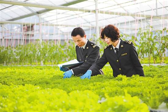 ■拱北海关关员在供澳蔬菜种植备案基地进行日常巡查。 |