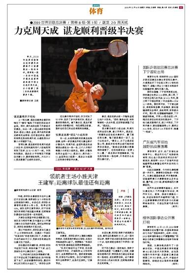 昨天,2019年世界羽联职业巡回赛总决赛展开小组赛最后一轮的争夺。前两轮一胜一负的中国选手谌龙直落两盘战胜中国台北选手周天成,以小组赛2胜1负的成绩顺利跻身4强。