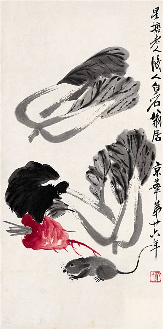 100多年后,白石老人的画作,和我们再次共度新春。 今年1月,北京画院与广州艺术博物院联手推出“美意延年——齐白石的艺术世界”展览, “156岁”的白石老人再次于春节期间来到广州。展览立足于北京画院藏齐白石作品的完备体系与学术研究,再加上广州艺术博物院收藏的齐白石作品,两院作品共计一百余件,向广州观众立体地展现一代巨匠的艺术世界。 齐白石艺术可谓中国传统文化中的一颗璀璨明珠,白石老人的人生经历更可说是文化史上的传奇。从一位乡间木匠到一代艺术大师,齐白石以自己一生的勤勉追求,在诗、书、画、印各方面都取得了杰出的成就。他擅长花木、禽鸟、水族、蔬果、草虫、山水、人物等各个门类,具有雅俗共赏、清新无华的艺术格调,并把中国写意画的发展推向了历史的新巅峰。 北京画院艺委会主任王明明在接受收藏周刊独家专访时表示:“很长一段时间,中国画一直被认为是落后的,需要借助西方很多观念和技法来改造。以西方观念艺术切入的中国画改良,中国画更加多样化,但又有与其它画种趋同化的倾向,丢失了中国画的独特性,更谈不上表现笔墨精妙,虚实、留白,乃至书法在画中的体现,诗词、图章的运用,以及独特的中国意境的体现。齐白石的艺术成就是诗书画印之集大成者,我们在全国不同地方展出齐白石的艺术精品原作,是让更多的观众和专业人士能够了解齐白石作品的意义和对中国画发展的思考。” 北京画院副院长、北京画院美术馆馆长吴洪亮则表示:“‘大人者不失其赤子之心者也’。齐白石的所谓赤子之心,我觉得是支撑他艺术能最后走到那样一个高点的最重要的推动力,不仅仅是他所谓的勤奋、所谓的天分。‘真有天然之趣’,这6个字是齐白石艺术的核心。” (收藏周刊编辑部)