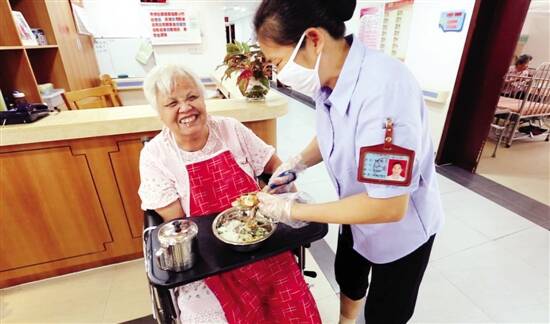 ■广东首批“最美养老护理员”、广州市黄埔区老人院养老护理员李彩燕悉心照料老人。(资料照片) |